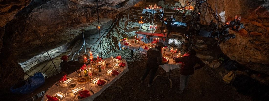 Dinner took place afterwards in the cave itself. For dinner we had Raclette a discrétion. Of course without electric light, only with candles.
